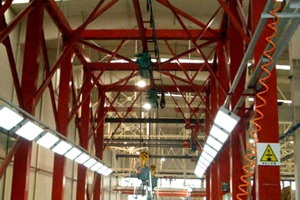 懸掛輸送機廣泛應用于連續地在廠內輸送各種成件物品和裝在容器或包內的散裝物料,也可在各個工業部門的流水線中用來在各工序間輸送工件,完成各種工藝過程實現輸送和工藝作業的綜合機械化。